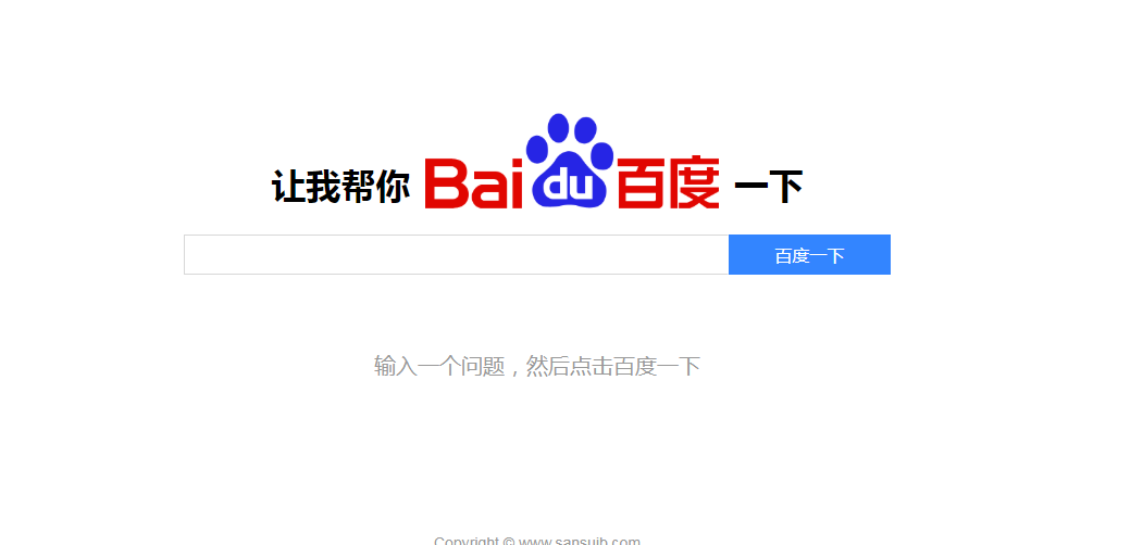 源码简介:输入一个问题,然后点击百度一下,生成一个链接,将链接发给对方,即可为对方自动百度搜索。这个能做很多事,大家可以自己试试。 帮你百度一下 html源码 专治伸手党 下载地址:https://lanzous.com/ibifqje © 允许规范转载 赞 如果觉得我的文章对你有用,请随意赞赏
