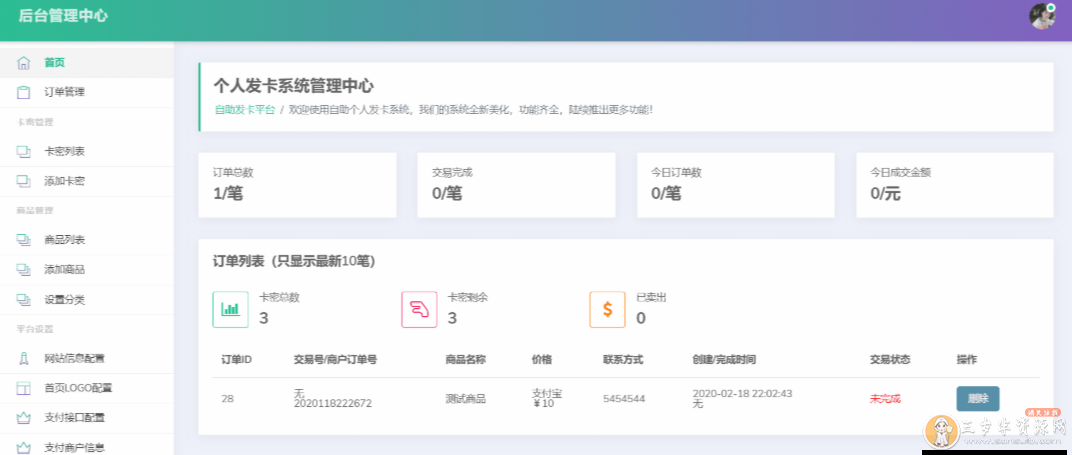自适应个人自助发卡系统,这是一款我在网上看到发卡平台源码,然后进行二次开发
