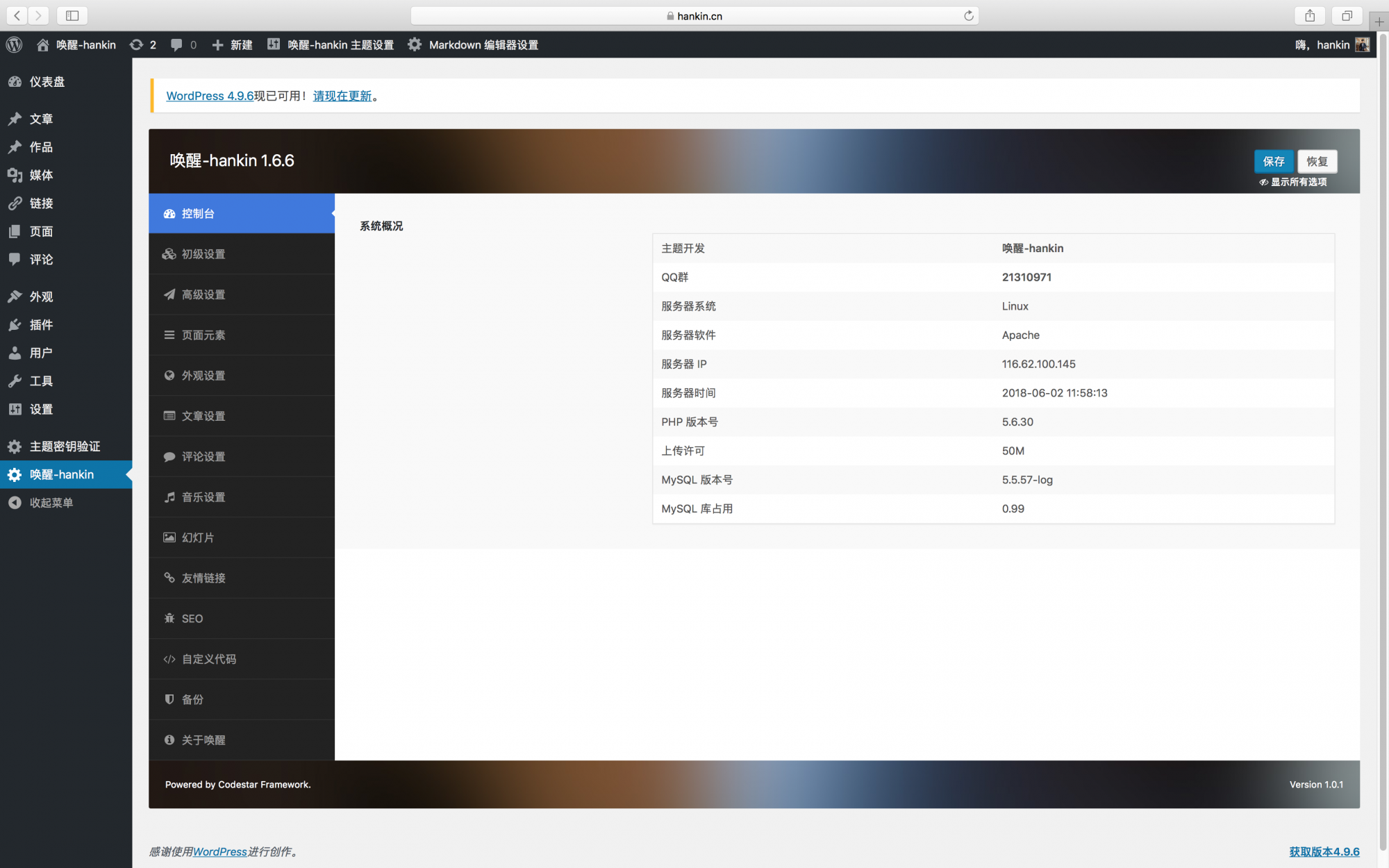 丰富的社交元素:目录、图片灯箱效果、“热门文章”、“最新文章”、“随机文章”、“标签云”、短代码高亮文本、音乐播放器,markdown编辑器,让你的博客个性化起来。