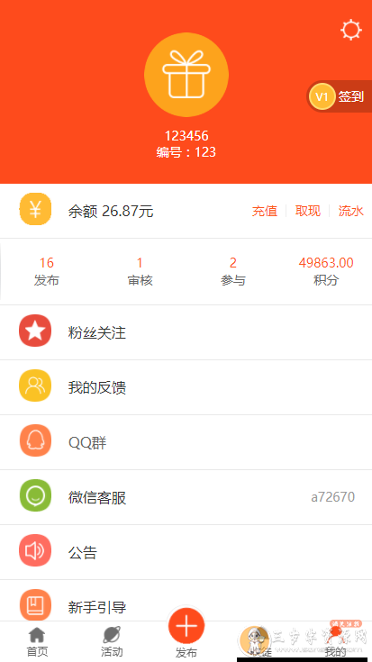 11.提现管理:有详细用户提现记录,提现完会给提示扣除。可以人工审核付款。用户提现时会显示扣除一定数量的手续费给平台使用。12.任务管理:可以对用户进行任务编辑审核,放弃审核任务,管理员可以后台审核任务通过,才能展示出来13.会员管理:每天可以签到有积分14.后台管理:拥有手机端管理和电脑端管理,可以自适应各个平台,给你创业的梦想。