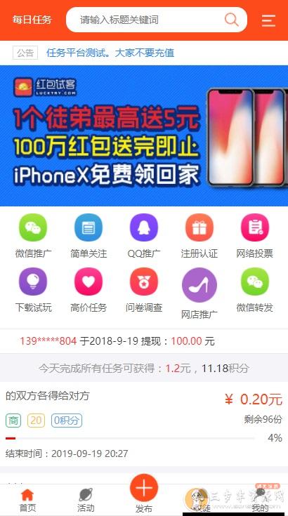 做任务赚佣金,广告主发布任务可推广的非常实用的威客平台源码