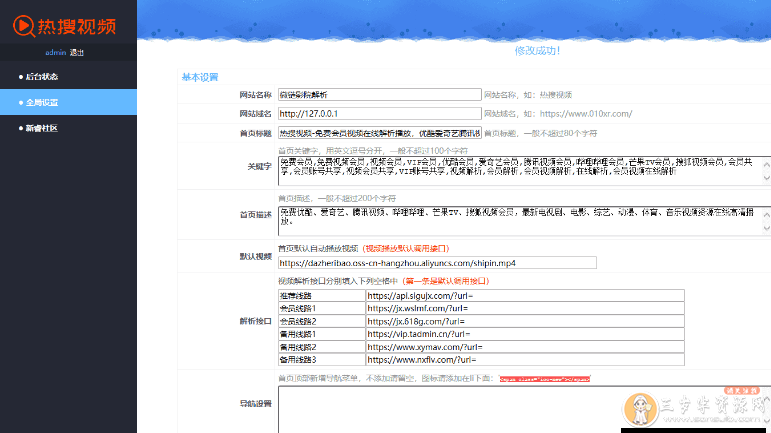 一个PHP视频解析VIP网站程序源码,喜欢就下载吧。简单清爽风格VIP视频解析网站源码,比较简单,直接上传到服务器即可使用,带后台可以自主在后台更换解析接口。在后台也带了很多广告位,如果有需要也可以自己添加广告。后台地址:域名/admin 账号密码都是:admin VIP视频解析网站源码 PHP视频解析源码下载 下载地址:https://www.lanzous.com/i71rm0h © 允许规范转载 赞 如果觉得我的文章对你有用,请随意赞赏