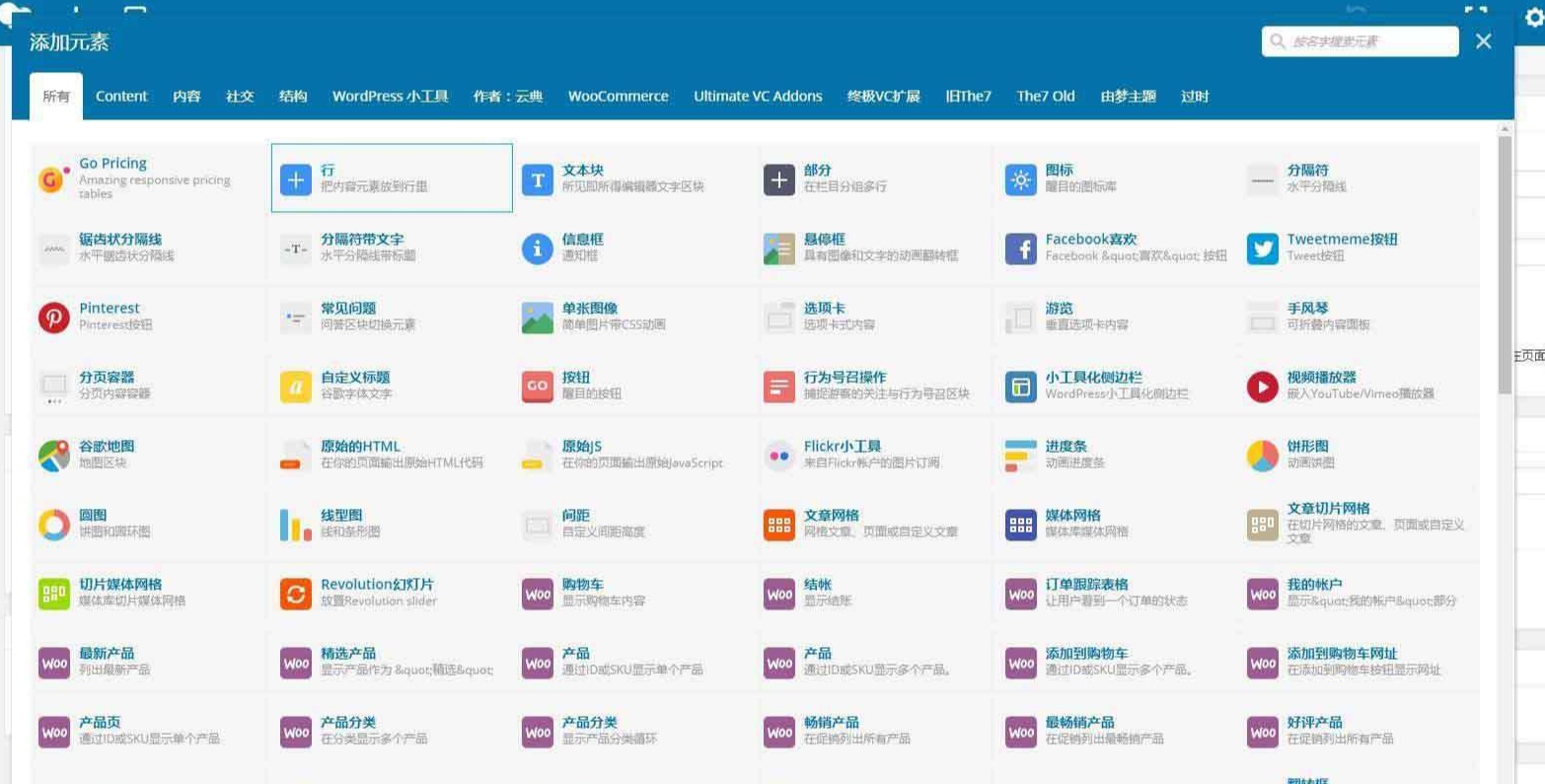 包含插件:Visual composer可视化前端编辑器、Ultimate_VC_Addons交互特效插件、Revslider幻灯片、Layerslider层幻灯片、pricing价格表单、woocommerce电子商务、云典编辑器拓展等插件。