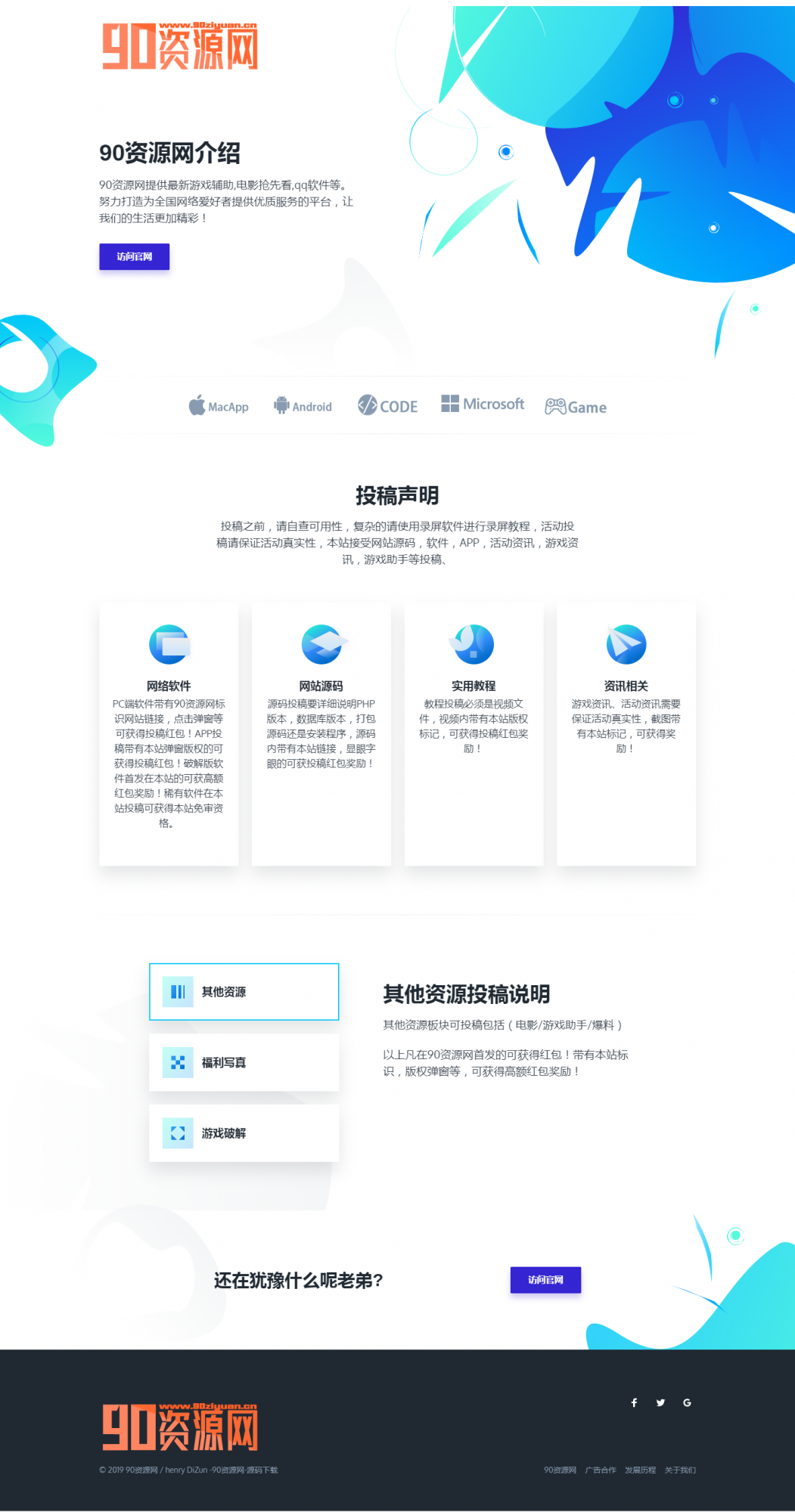 炫酷蓝色响应式全网首发新款投稿声明html源码 投稿声明 html源码 下载地址:https://www.lanzous.com/i5oasjg © 允许规范转载 赞 如果觉得我的文章对你有用,请随意赞赏