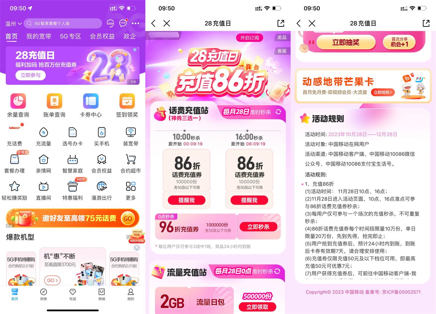 2023-11-28置顶新一期中国移动APP搜索“28充值日”->10点、16点抢86折话费券,共限量20万份活动地址:https://tb3.cn/AzCtW8 © 允许规范转载 赞 如果觉得我的文章对你有用,请随意赞赏