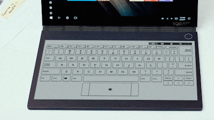 实体键盘换成虚拟键盘,怎么保证输入体验?这是一个很大的挑战,YOGA Book 2的研发团队没有为了创新丢掉本职的东西。新一代的墨水屏虚拟键盘,虽然按键本身仍然是平坦的,但使用了创新的墨水屏3D效果键盘设计,打字时可以感受到震动,同时也会有音效提醒,还原出了实体键盘一般的体验。