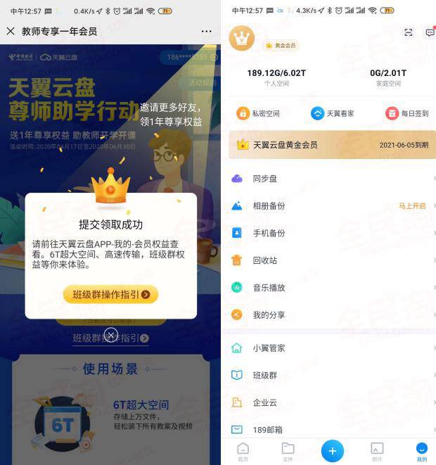 天翼云盘 尊师助学行动 免费领了年的黄金会员了!