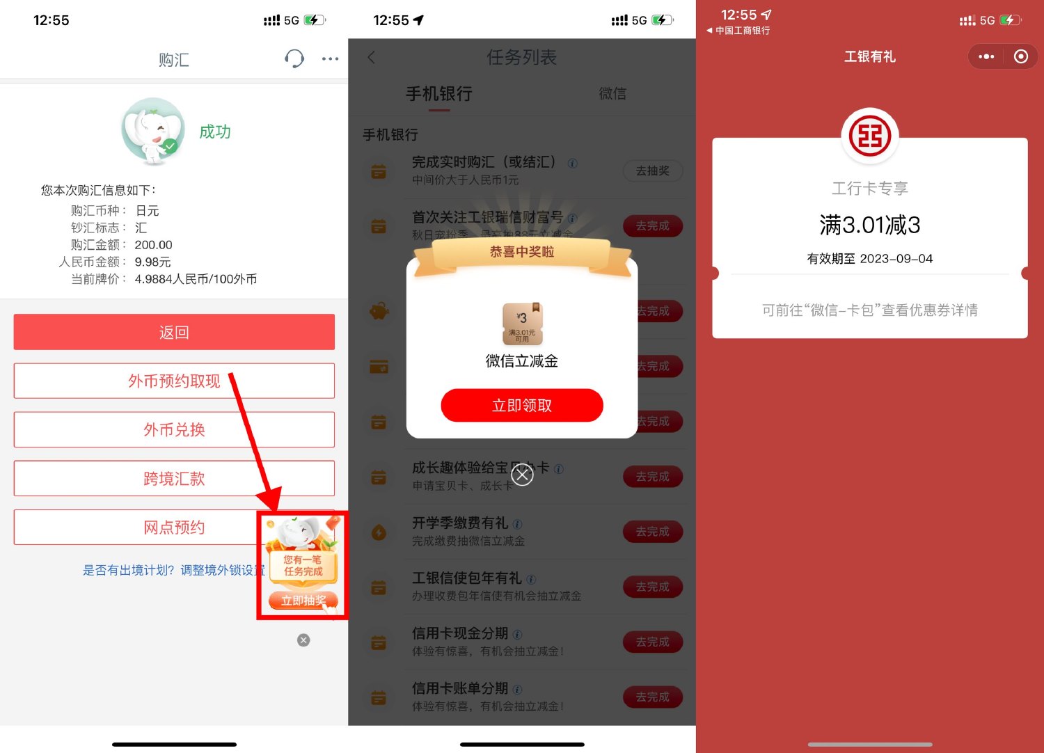 9月2日置顶新一期工行APP搜索“任务中心”->结售汇任务->选择买200曰元或2000韓...
