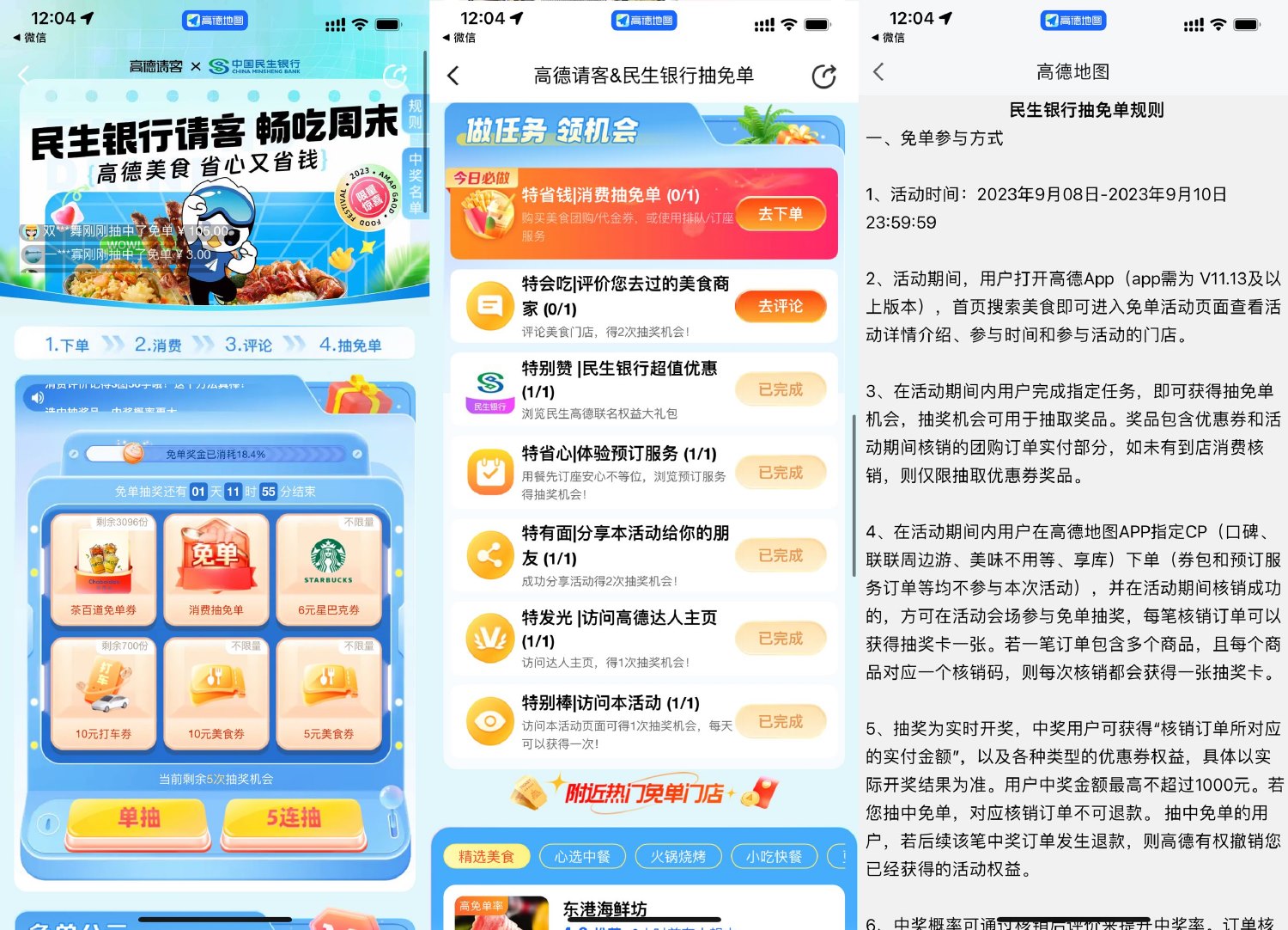 9月9日置顶新一期高德地图APP搜索“免单”->点击弹窗或悬浮窗进入->抽中免单或打车券才有用